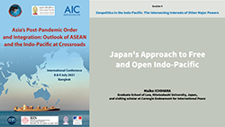 This presentation looks at Japan’s approach to the Free and Open Indo-Pacific vision, and analyzes that Japan promotes liberal values with an incrementalist and pluralistic approach. Japan is uniquely positioned to operate in the diplomatic space between the value-laden approach of Western democracies and (...)