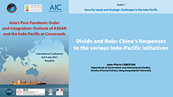 Divide and Rule : China’s Responses to the various Indo-Pacific Initiatives